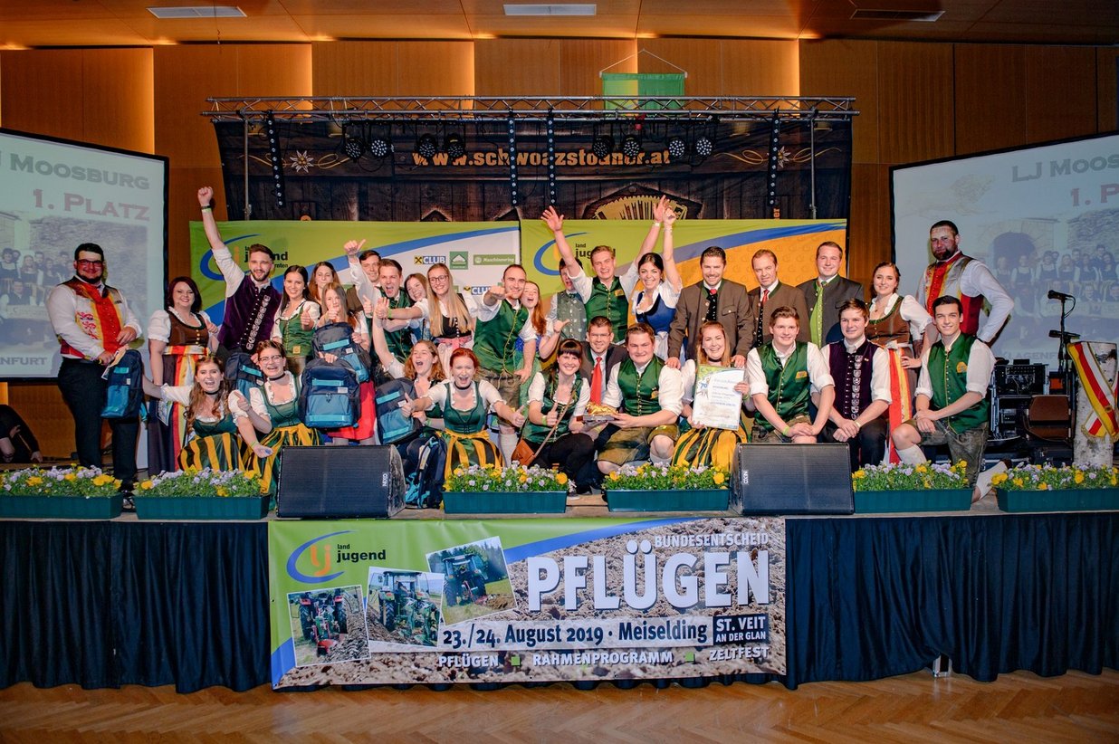 Als es dann um den ersten Stockerl-Platz ging, war die Stimmung im Festsaal schon am Siedepunkt. Die Landjugend Frauenstein aus dem Bezirk St. Veit freute sich sehr über den 3. Platz, haben sie sich diesen bronzenen Platz hart erkämpft und waren im letzten Jahr sehr aktiv tätig. Zu erwähnen ist dabei unter anderem heuer ihr 50-jähriges Bestandsjubiläum. Der dritte Platz freute sich über Preise von ÖAMTC Fahrtechnik GmbH Zentrum St. Veit/ Glan, Unser Lagerhaus Warenhandels Ges. m.b.H. und über einen Gutschein vom Affenberg in Landskron.