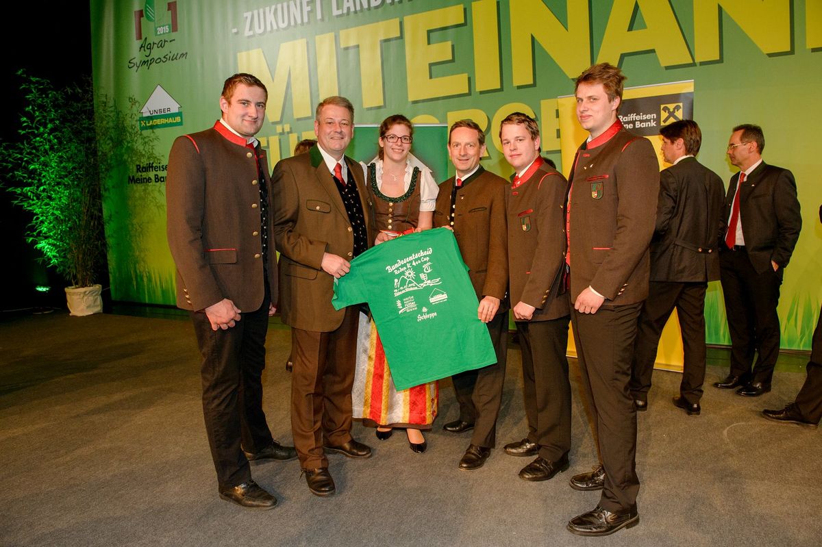 Das Agrarsymposium ist die agrarische Fach und Bildungsveranstaltung von Raiffeisen und Lagerhaus. Die Landjugend Kärnten war mit Landesobmann Mario Rauscher, Landesleiterin Stv. Kathrin Bacher, Landesagrarsprecher Herwig Drießler und Landjugendreferent Michael Köchl vertreten. Nach der Eröffnung waren interessante Fachvorträge zu Agrarmärkte und Agrarpolitik am Programm. Die Präsentation von vier Kärntner Vorzeigebetriebe rundeten den interessanten Vormittag ab. Nach der Mittagspause wurde LK- Präsident ÖR Ing. Johann Mössler von Moderator Mike Diwald zu verschiedenen Themenbereichen der Landwirtschaft in Kärnten interviewt. Im Anschluss präsentierte Lebensminister DI Andrä Rupprechter die Erfahrungen aus seinem ersten Arbeitsjahr als Minister und Präsident Mössler überreichte dem Minister als Dank für die Lösung der Almproblematik den Marsch „Almgruss“ komponiert von Hubby Maier und uraufgeführt von der Postkapelle Klagenfurt. Im Anschluss klang die Veranstaltung mit einem gemeinsamen Essen aus. Drei neue Kooperationsjahre Die Landjugend Kärnten hat mit Unser Lagerhaus WHG die Kooperation für weitere drei Jahre verlängert. Die Landjugend Kärnten vertreten durch Landesobmann Mario Rauscher und Referent Michael Köchl, die Landwirtschaftskammer vertreten durch Präsident ÖR Ing. Johann Mössler und Kammeramtsdirektor DI Hans Mikl und unser Lagerhaus WHG vertreten durch Geschäftsführer DI Georg Messner und Marketingleiter Mag. Christoph Winkler unterzeichneten beim Agrarsymposium den neuen Vertrag. Die Landjugend Kärnten bedankt sich bei dem treuen Kooperationspartner für die bisherige Unterstützung und auch für eine starke gemeinsame Zusammenarbeit in Zukunft. Im Zuge des Agrarsymposium konnten wir auch Minister Rupprechter und Landesrat DI Christian Benger sowie Präsident Mössler herzlich zu unserem Bundesentscheid Reden und 4-er Cup von 9. bis 12.7. in Velden am Wörthersee einladen. Die Landjugend Kärnten bedankt sich bei unseren Kooperationspartnern Lagerhaus und Raiffeisen für die Einladung zum Agrarsymposium und wir freuen uns auf ein spannendes gemeinsames Arbeitsjahr. Michael Köchl, Bakk.techn.